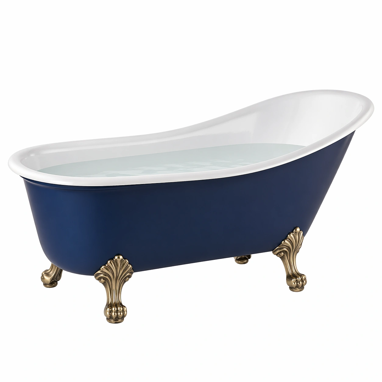 Freistehende Badewanne acryl blau weiß messingfüße